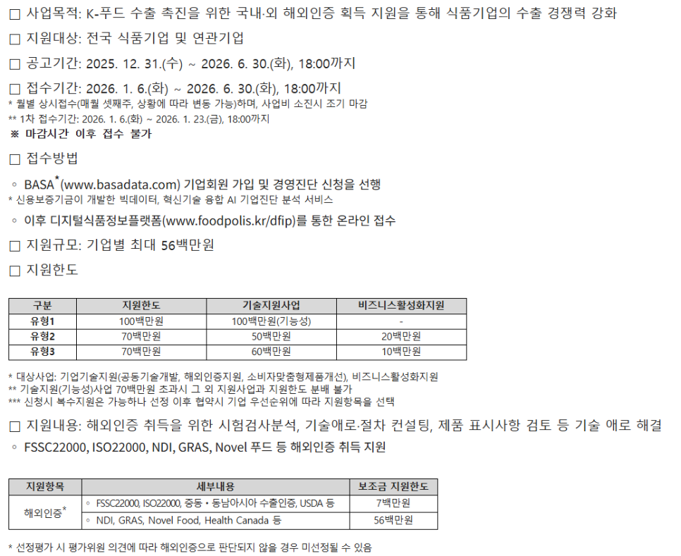 [한국경영연구소] 2026년 식품기업 해외인증 지원 사업 모집공고