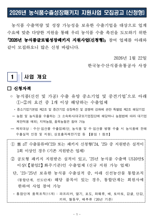 [한국경영연구소] 2026년 농식품글로벌성장패키지 지원사업 모집 공고(신청형)