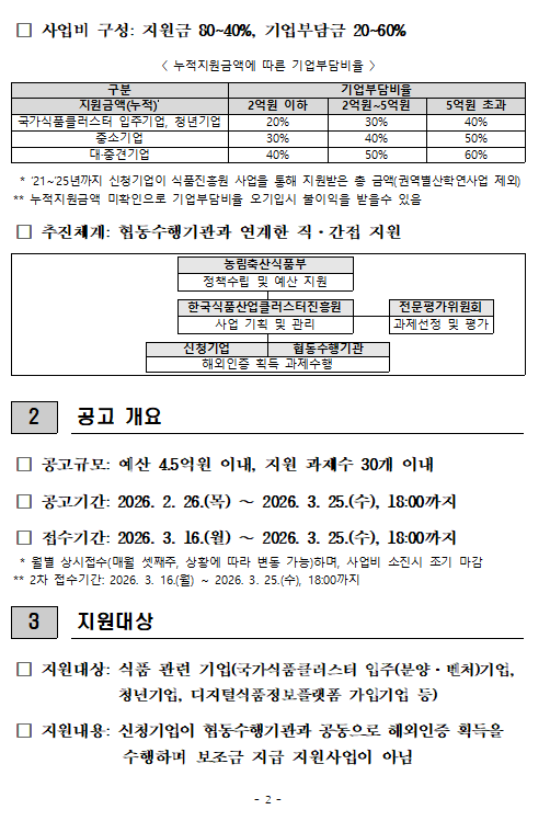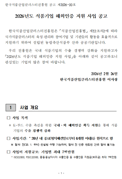 [한국경영연구소] [식품진흥원] 2026년 식품기업 해외인증 지원사업 공고(2차) 안내