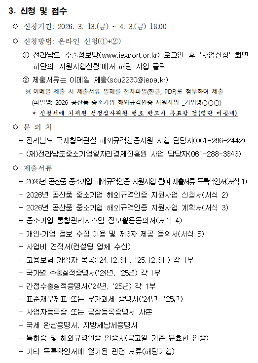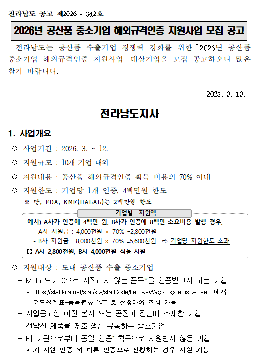 [한국경영연구소] [전남] 2026년 공산품 중소기업 해외규격인증 지원사업 모집 공고