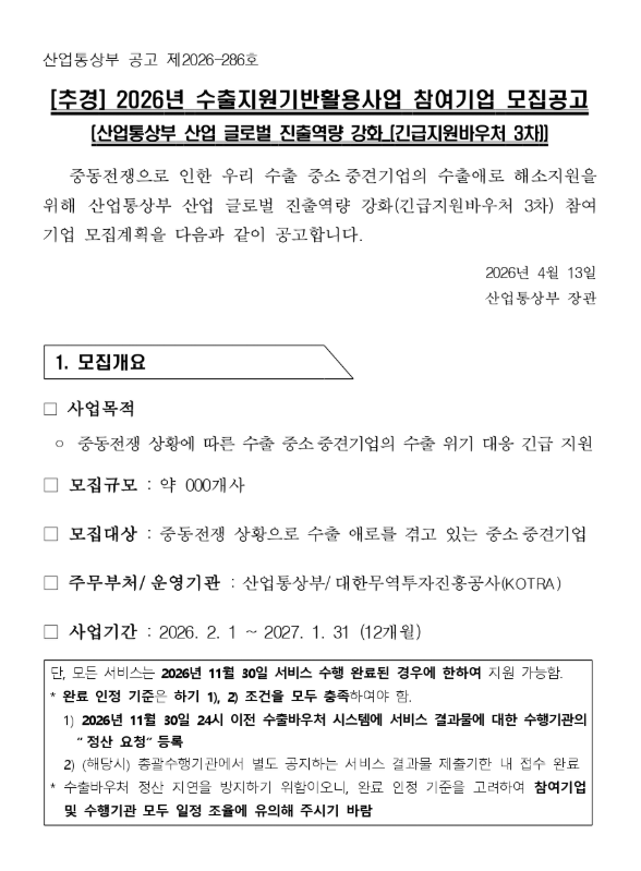 (산업통상부 산업 글로벌 진출역량 강화 긴급지원바우처)