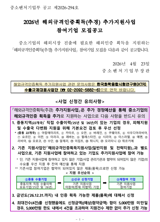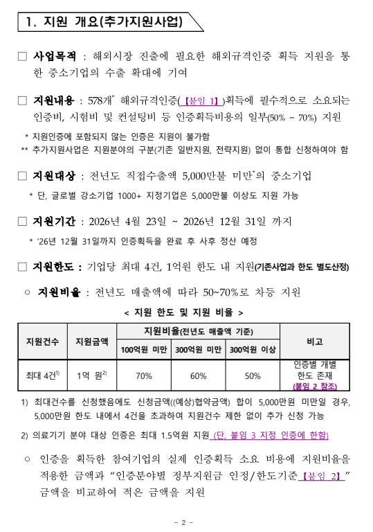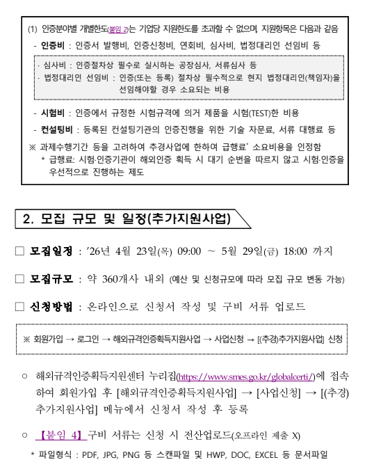 [한국경영연구소] 2026년 해외규격인증획득(추경) 추가지원사업 참여기업 모집 공고