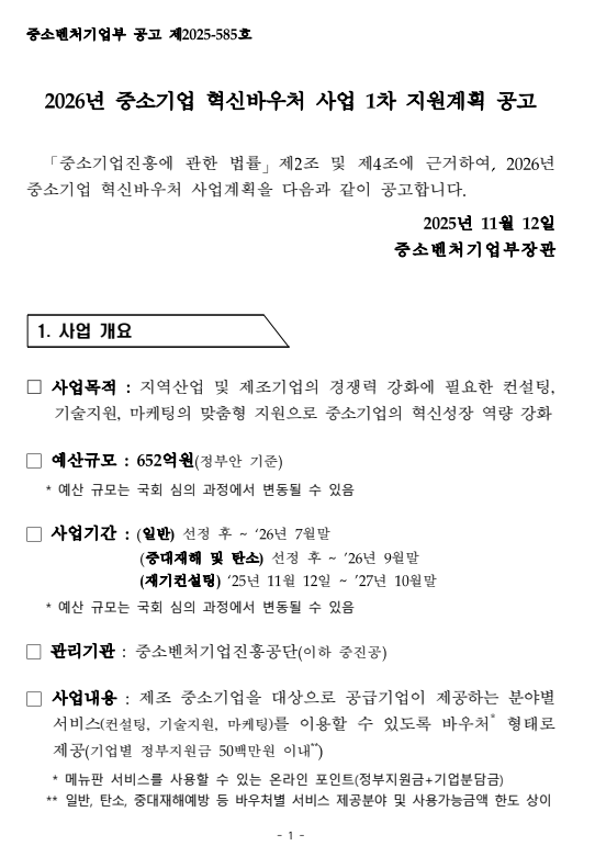 [한국경영연구소] 2026년 중소기업 혁신바우처 사업 1차 지원계획 공고