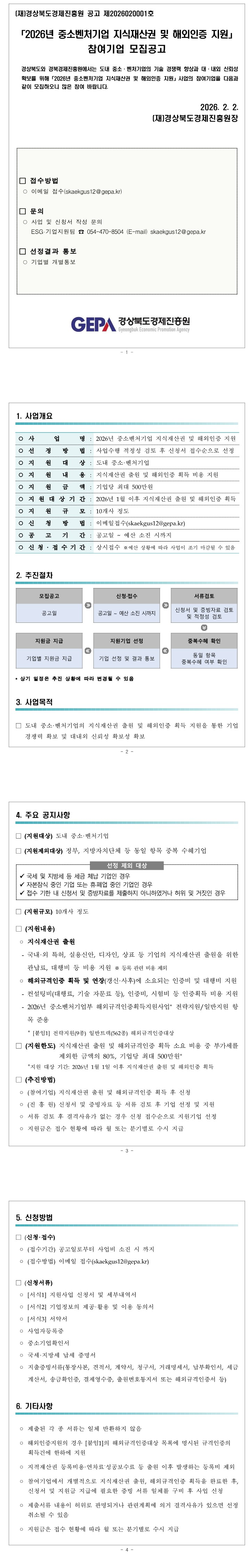 [한국경영연구소] [경북] 2026년 중소벤처기업 지식재산권 및 해외인증 지원사업 참가기업 모집 공고