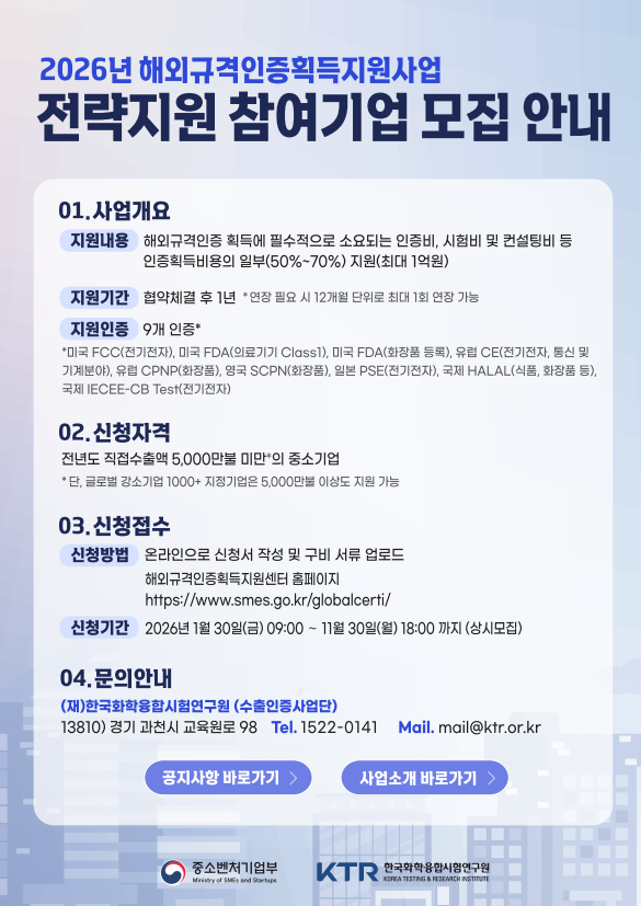 [한국경영연구소] 2026년 해외규격인증획득지원사업 전략지원 참여기업 모집안내