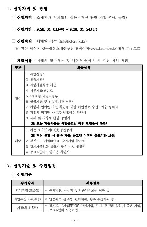 [한국경영연구소] [경기] 2026년 섬유패션 친환경 글로벌 인증 지원 수혜기업 모집 공고
